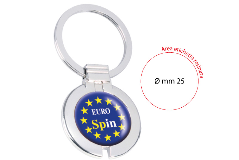 portachiavi magnetico ad anello piatto parte frontale in acrilico personalizzabile retro con gettone per carrello spesa estraibile confezione in astuccio regalo